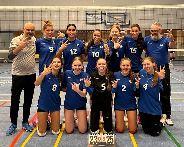 => eigener Nachbericht - Die 5. Damen hatten am Sonntagvormittag Heimrecht. Sie besiegten SC DjK Everswinkel Mixed im Tie-Break mit 3:2 (25:16, 25:20, 17:25, 23:25, 15:4). "Viele Hochs und Tiefs, trotzdem den Sieg gut nach Haus gebracht! Mit sehr punktreichen Sprungaufschlägen von Fina, Carla und Lotta E. konnten wir uns Vorsprünge erkämpfen, die wir dann durch Teils unglückliche Eigenfehler oft wieder verloren haben. Aber wir konnten viel lernen, teils schon mutig angreifen (auch das erste Mal übers Hinterfeld) und nehmen viel mit fürs nächste Wochenende!", berichtet Trainerin Laura. Am nächsten Wochenende ist Jugendspieltag und die Mädels fiebern den nächsten U16-Spielen entgegen.