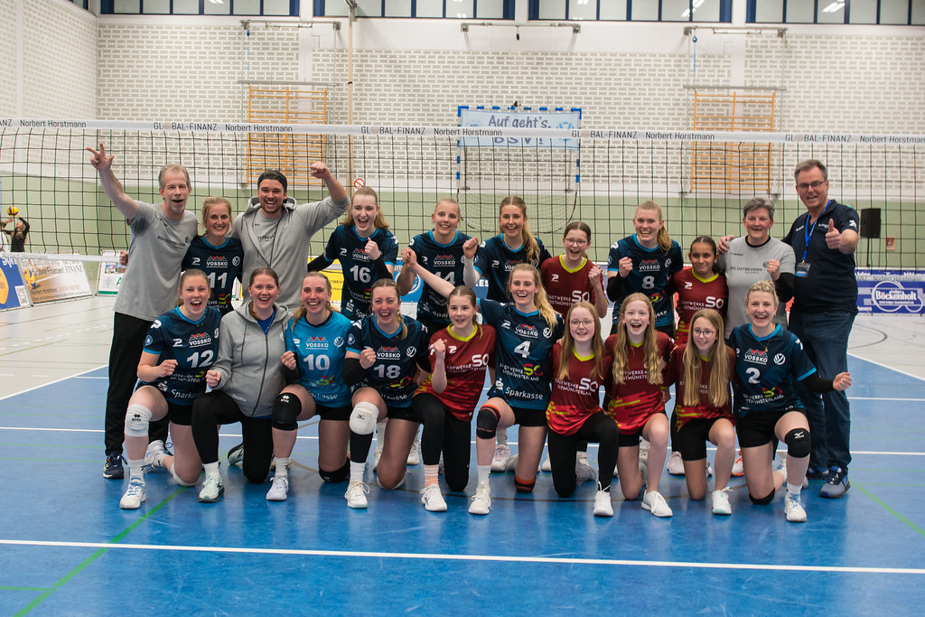 Als unsere Damen dann im Dritten immernoch den Ton angaben und das letzte Bonner Aufbäumen (von 16:10 auf 16:15) im blinden Verständnis zwischen Zuspielerin Lea und Schnellangreiferin Sabrina gestoppt werden konnte, rieb sich mancher ein wenig ungläubig die Augen: Ging das hier wirklich glatt mit 3:0 an den BSV? Sieben Bonner Eigenfehler später riss fast die gesamte Beverhalle verzückt die Arme in die Höhe und die Mannschaft (einschließlich Marie) tanzte im Kreis. Drei wichtige und nicht unbedingt erwartete Punkte im engen Kampf um den sicheren Klassenerhalt waren in Ostbevern geblieben.